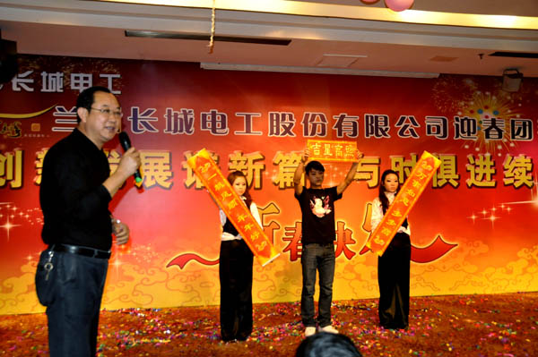 長城電工董事長楊林發(fā)表熱情洋溢的新春祝福講話 1月14日下午,公司在天水舉辦主題為“創(chuàng)新發(fā)展譜新篇,與時俱進續(xù)華章”2012年新年迎春聯(lián)歡團拜會。參加當天長城電工2012年經(jīng)營工作會議的全體員工歡聚一堂,共話新年到來,共祝長城電工美好明天!