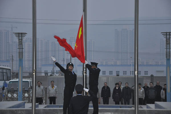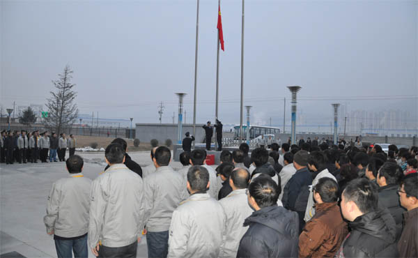 2012年2月13日,是毛澤東主席視察二一三暨長城電工天水二一三電器有限公司建企43周年紀念日。為紀念這一特殊的節(jié)日,早上8點,二一三公司總部全體職工在工業(yè)園樓前整齊列隊,舉行莊嚴的升旗儀式。儀式開始,3名護旗手肩扛旗幟,正步走到旗桿下,伴隨著雄壯的國歌,將鮮艷的五星紅旗冉冉升起,全體干部職工面向高高飄揚的旗幟莊嚴肅立,行注目禮。